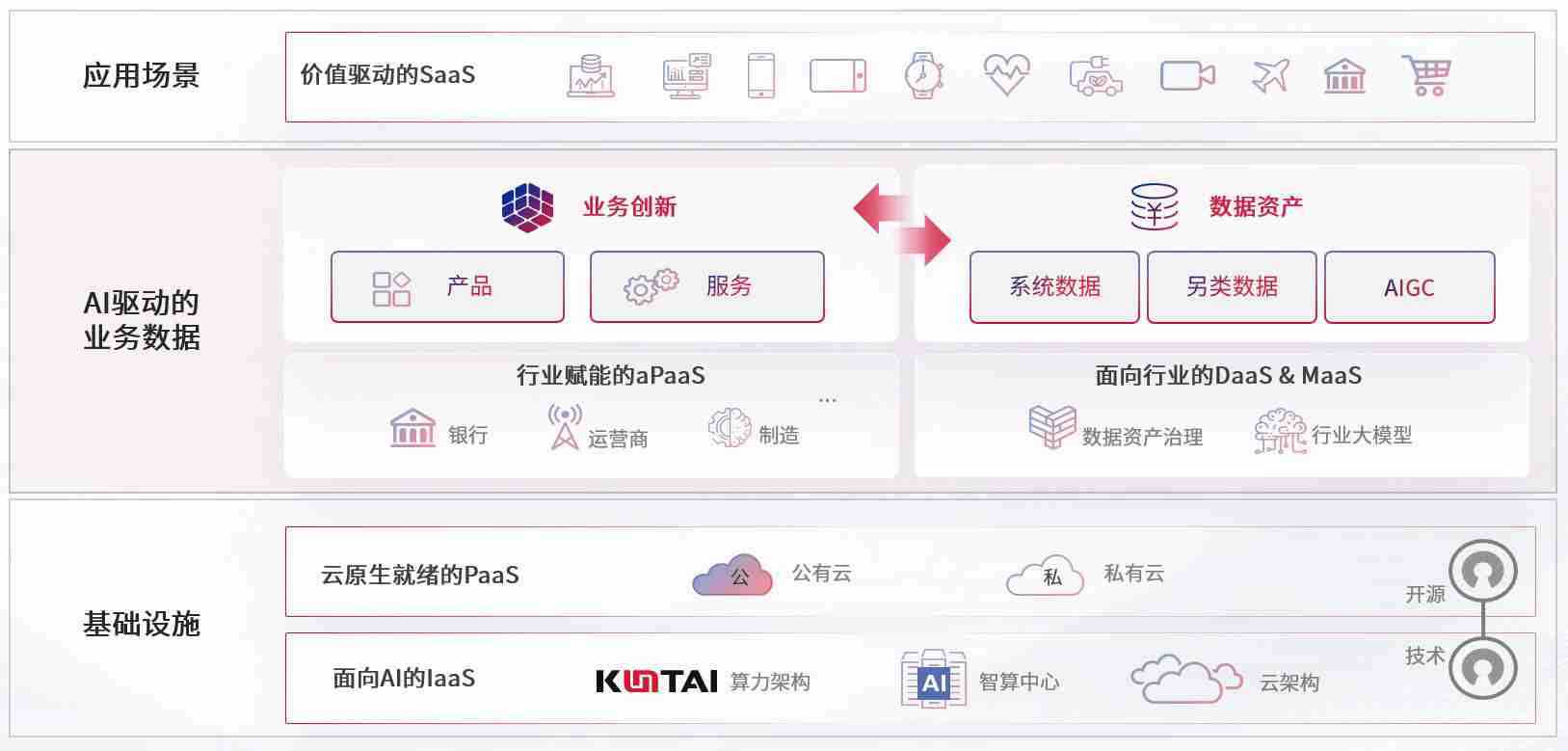 数字时代,,,围绕企业数字化转型的关键要素,,,,尊龙旗舰厅数码开创性的提出数云融合战略和技术体系框架,,,着力在云原生、、、数字原生、、AI原生和信创产业上架构产品和服务能力,,,,为处在不同数字化转型阶段的快消零售、、、、汽车、、、金融、、、、医疗、、政企、、、教育、、、运营商等行业客户提供泛在的敏捷IT能力和融合的数据驱动能力,,,,构建跨界融合创新的数字业务场景和新业务模式,,,助力企业级客户建立面向未来的核心能力和竞争优势,,,,全面推动社会的数字化、、、、智能化转型升级。。。
